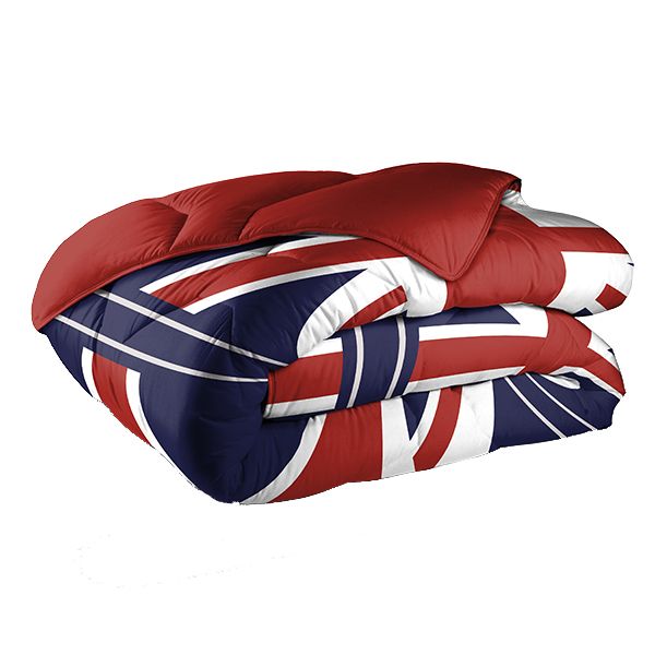 Le linge de lit à petit prix avec la Couette 220x240 cm 400 gr/m² London Flag Bleu. 1x couette microfibre 220 x 240 cm 4 saisons, recto imprimé, verso uni.