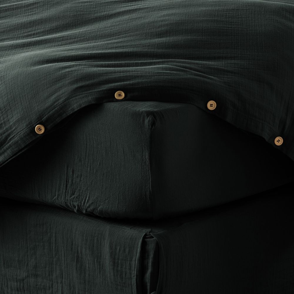 Drap housse 160x200+30 cm Gaze de Coton Terra Sapin