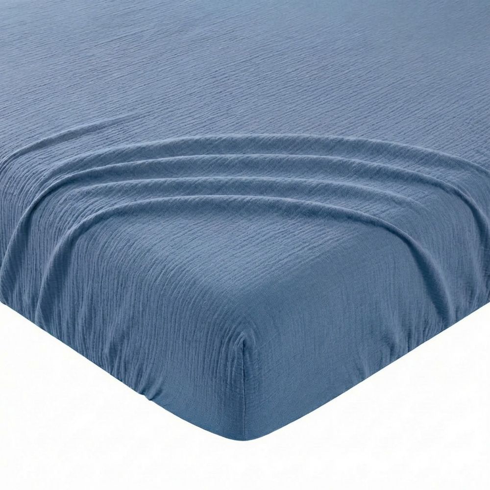 Nouveau Drap Housse 140x190+35 cm Gaze de Coton - Coton 57 fils Bleu Mer