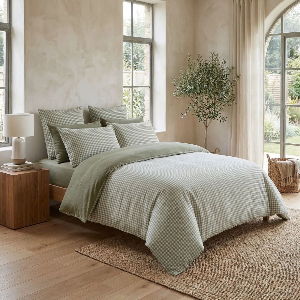 Housse de couette Reversible 140x200 cm Gaze de Coton Vickie Romarin au meilleur prix