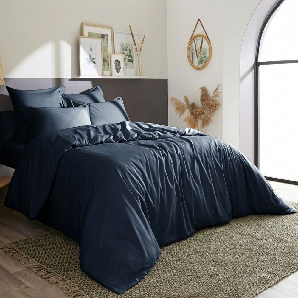 Housse de couette 140x200 cm Percale de Coton Bleu Nuit au meilleur prix