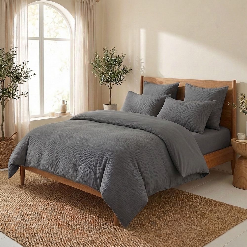 Parure de lit 240x260 cm Gaze de Coton - Coton 57 fils Charbon au meilleur prix