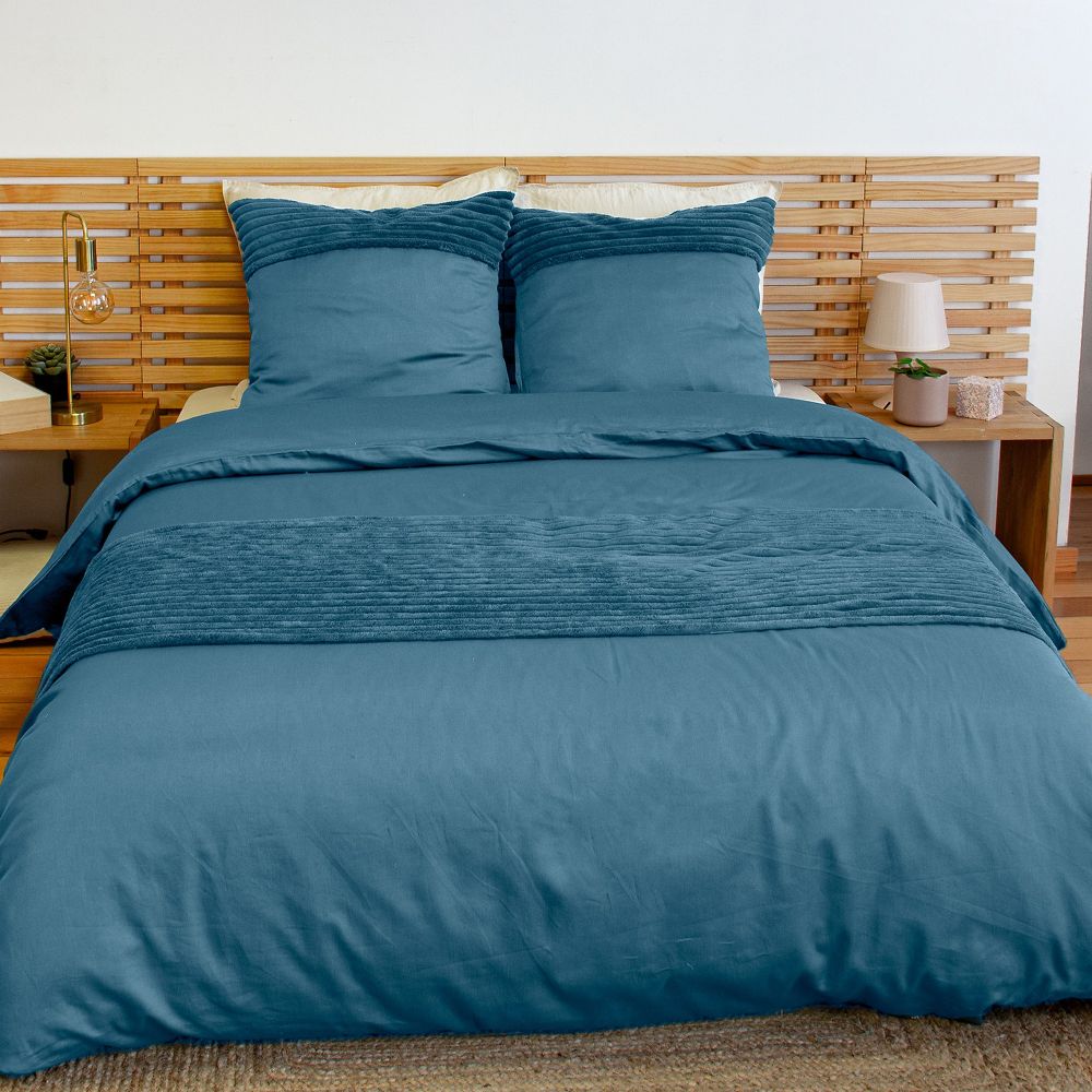 Descriptif Parure de lit 220x240 cm Microfibre Bleu Paon