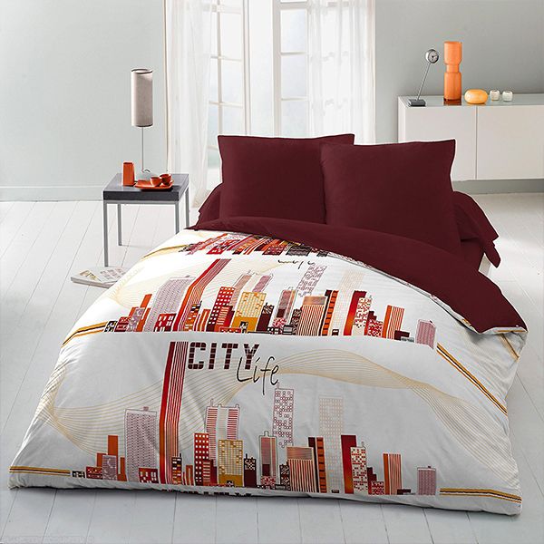 Parure housse de couette 220x240 cm microfibre city life au meilleur prix