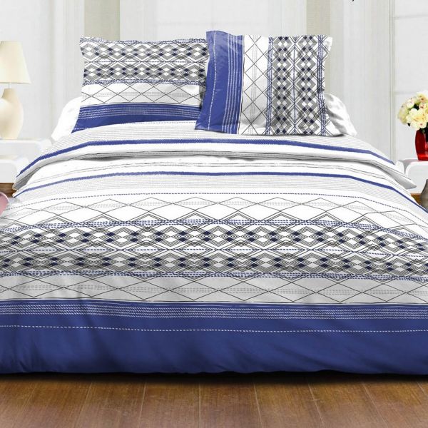 Prix fracassé ! Parure de couette 100% Coton 57 fils 240x260 cm Jacquard Bleu
