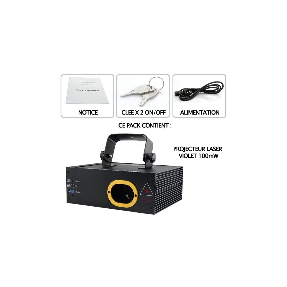 Projecteur laser violet 100mW avec détecteur son au meilleur prix