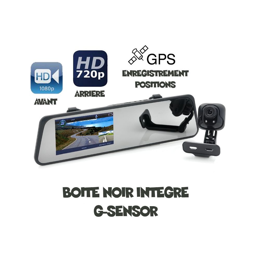 Rétroviseur LCD de 4.3 Pouces disposant d'une caméra 3MP 1080p Avant et 1.3 MP 720p Arrière à prix discount. Le rétroviseur LCD dispose d'un enregistreur GPS (BOITE NOIR) qui enregistre simplement à intervalles réguliers la position du rétroviseur. Le G-sensor permet d'enregistrer automatiquement la vidéo lors d'un impact. La vision nocturne vous permettra une vision nette même de nuit.