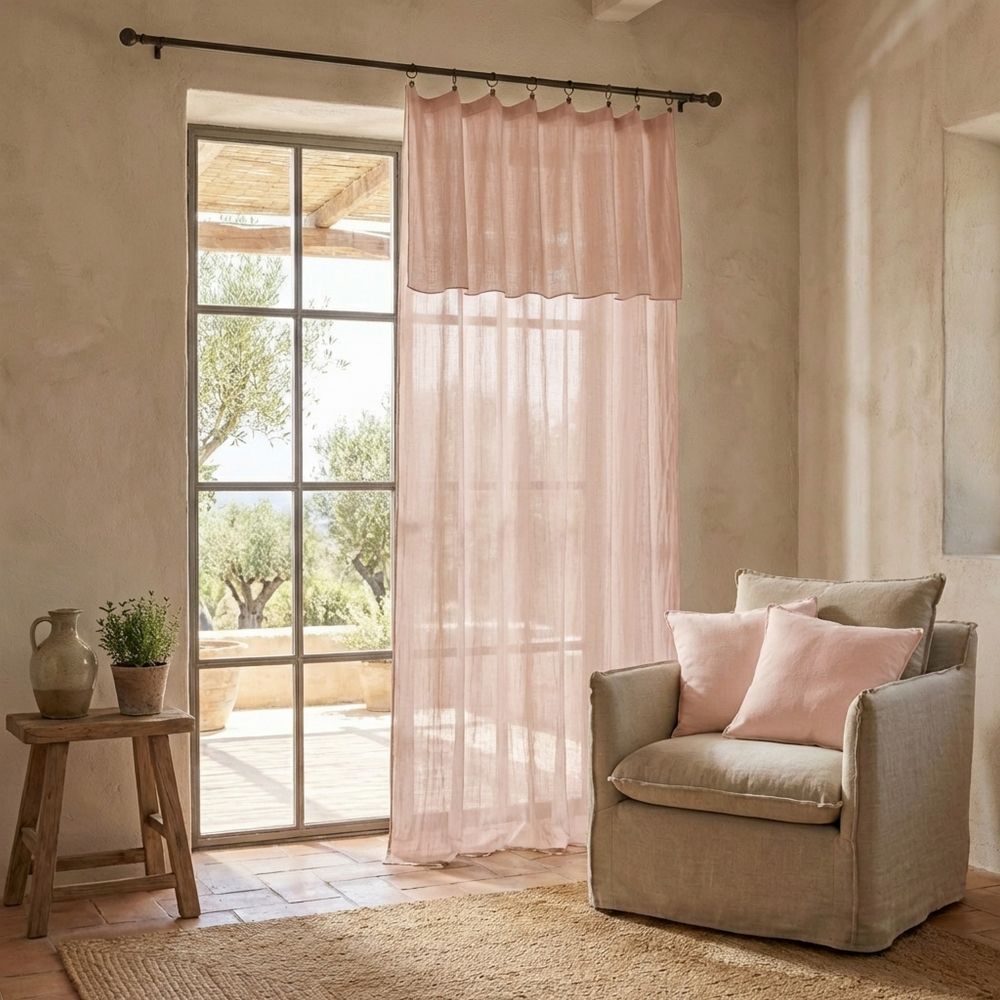 Rideau 100% gaze de coton 140x300 cm Rose clair finition : Point bourdon ton sur ton...